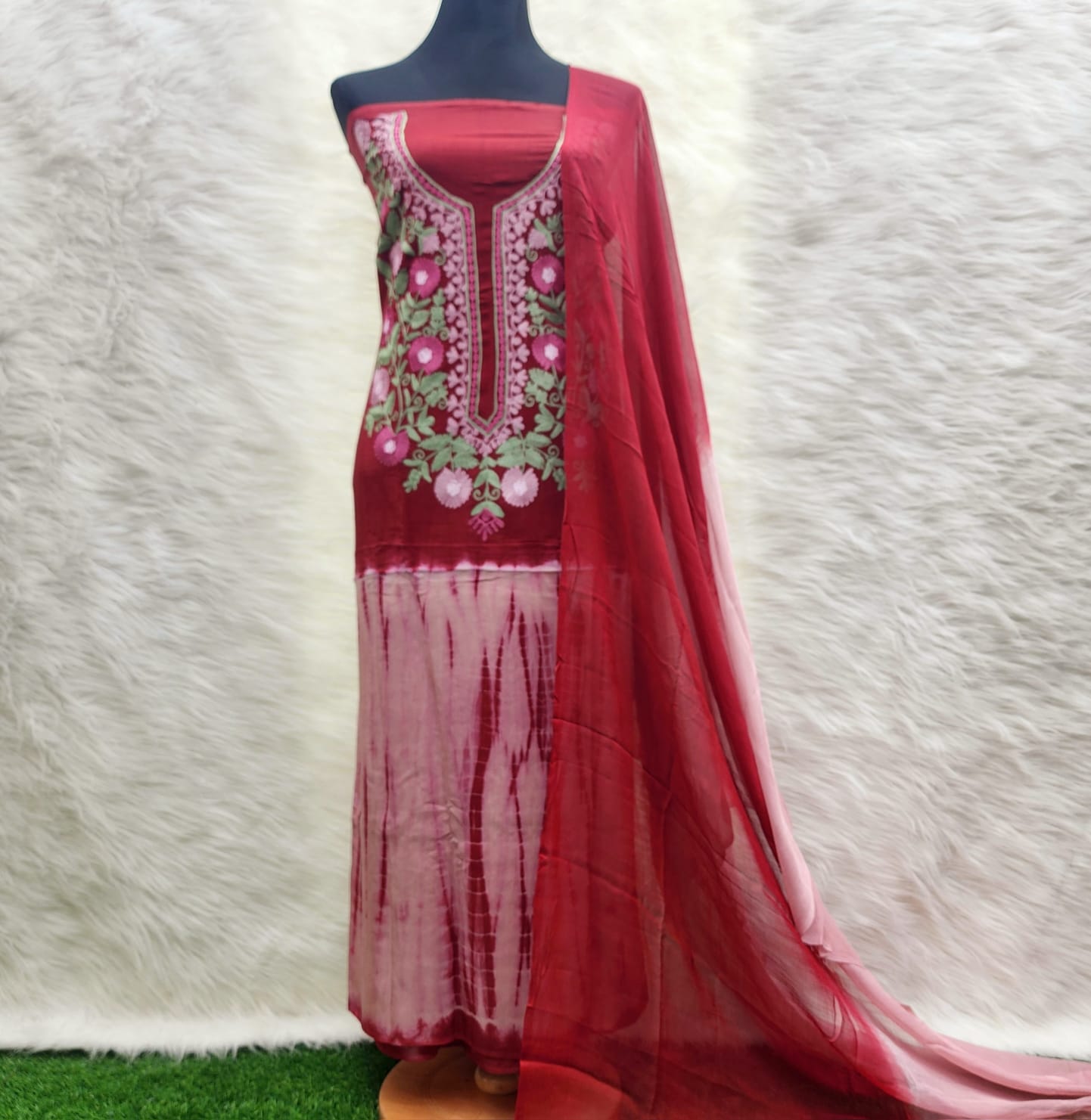 Pure soft silk Embroidery kamiz and pure chiffon Dupatta batik unstitch 2 piece
