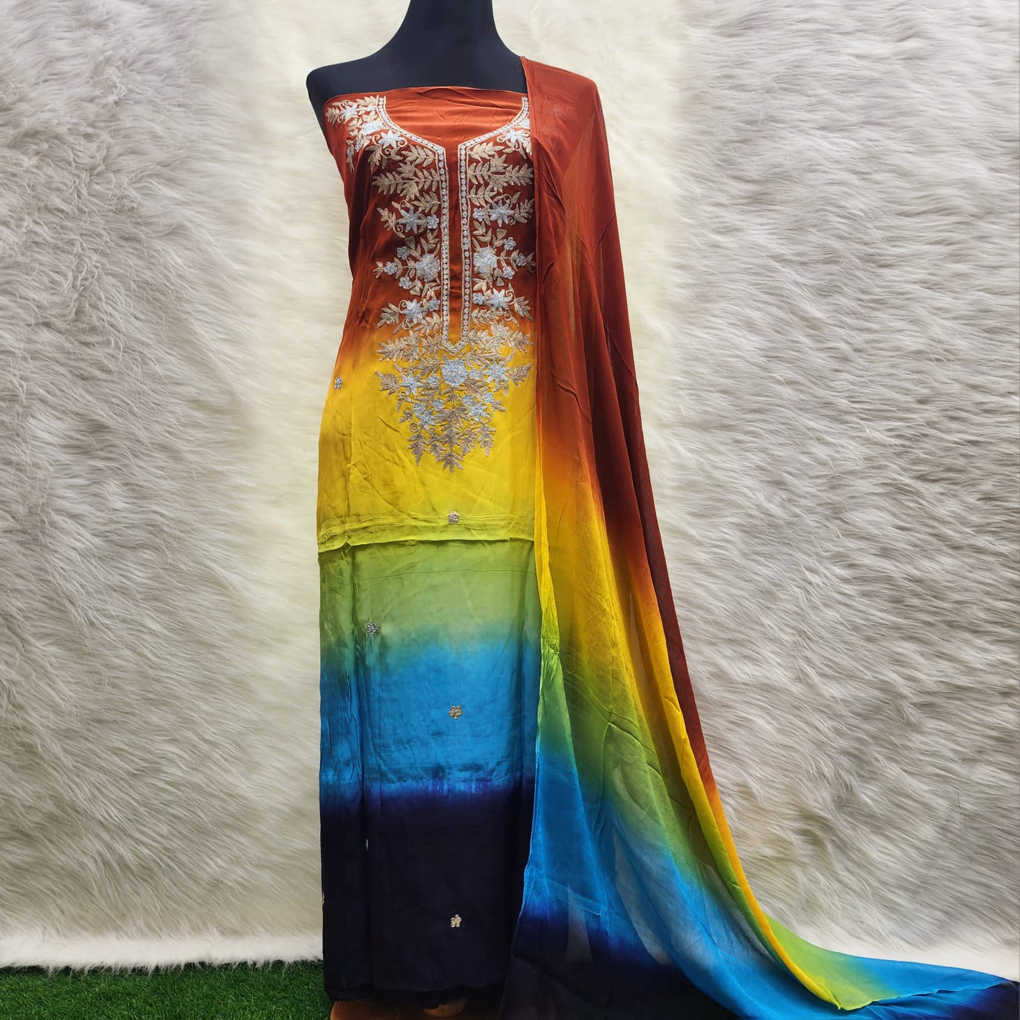 Pure soft silk Embroidery kamiz and pure chiffon Dupatta batik unstitch 2 piece