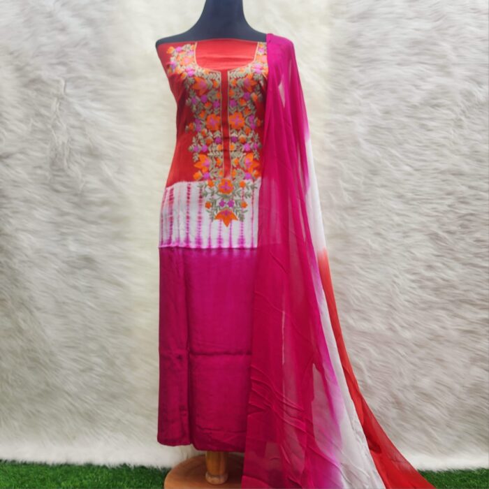 Pure soft silk Embroidery kamiz and pure chiffon Dupatta batik unstitch 2 piece